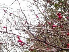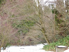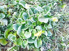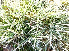 ↑ 今朝も晴天でしたが放射冷却で冷え込み、霜が太陽にキラキラ輝いていました。氷も張っていましたが、以前よりもずいぶん薄い氷でした。春が近づいています。