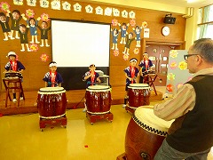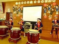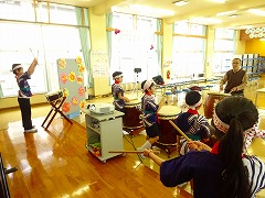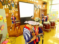 ↑ 2年生による、笠野でんでこ太鼓「ひびけ!つなげ!かさのの音」 6年生が奏でる太鼓の響きを受け継ごうと、2年生7人が力を合わせて練習してきました。美しい笛の音と小太鼓のリズミカルな響き、そして、太鼓の勇ましい響きがうまく調和し、笠野の響きを見事に披露してくれました。6年生にとっても思い出がいっぱい詰まった「かさのでんでこ太鼓」です。大きくなったら、またこの笠野で一緒に「でんでこ太鼓」を演奏する日が来ることを信じています。ご指導いただきました七黒先生、ありがとうございました。