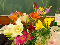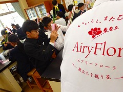 ↑ 笠野公民館さんからは、チューリップの鉢が贈られました。チューリップの咲くころは、中学校に入学している頃でしょう。チューリップの花を見ながら、地域の方の応援に感謝し、新しい生活をスタートさせてください。