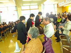 ↑卒業生が「蛍の光」の曲と盛大な拍手とともに旅立っていきました。「未来に幸あれ」