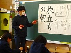 ↑ 昼休みは、西尾先生に校歌をご指導いただきました。あごを引くこと、人の歌声を聞くこと、息を下に向かって吐くこと、すると、きれいな歌声が響くと教わりました。5限目は、6年生が卒業式で歌う「旅立ちの日に」をご指導いただきました。9人の響きがとてもきれいだとほめていただき、さらに意欲が高まりました。いよいよ、卒業式練習です。
