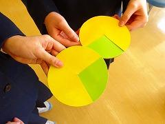↑ 2年生 算数 2分の1とは、どんな大きさかな?2年生で分数を学びます。色紙を切って、いろいろな2分の1があることを学び、「2分の1」とはどんな大きさか考えました。
