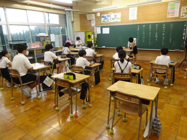 3,4年生と5,6年生が複式学級となっている本校では、算数などで「わたり」の授業を行っています。「わたり」とは、2学年が同時に学習するために、1時間の授業の中で、教師が2学年の直接的な学習指導を交互に行うことを言います。教師が一方の学年を直接指導している時間は、もう一方の学年は自分たちで学習を進めることになります。5年生くらいになると慣れたもので上手に学習を進めていました。3年生もかなり慣れてきたようです。