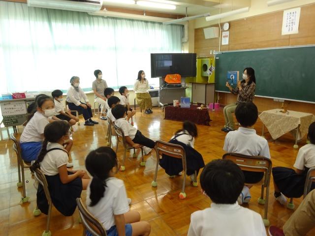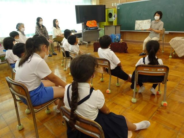 津幡町のお話グループ「金のがちょう」さんが4名来校し、1,2年生とあじさい学級児童を対象にお話会が開催されました。楽しい手遊びを教えていただいたり、仲秋の名月が間近ということで月が出てくる本の読み聞かせをしていただいたりと、ステキな時間を過ごすことができました。ありがとうございました。
