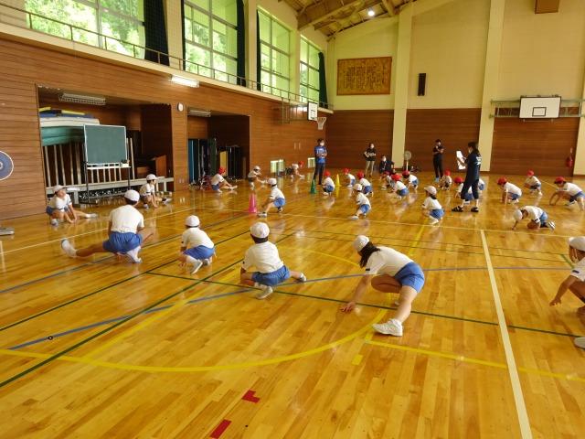 今日でレッツピョンピョンピョンが終了しました。最後の日となった今日は、全校児童の前で技を披露しました。できるようになった技や上手になった技に挑戦していました。この3週間で、みんなとても上達しました。何よりも一生懸命努力する姿が素晴らしかったです。