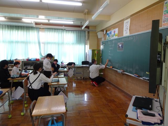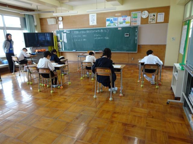 休み時間後,6年生が算数の授業をしていました。今年度から算数の複式授業が解消され,6年生だけでの授業となっています。それでも,ガイド役が中心となって自分たちで授業を進めていました。さすが6年生です。
