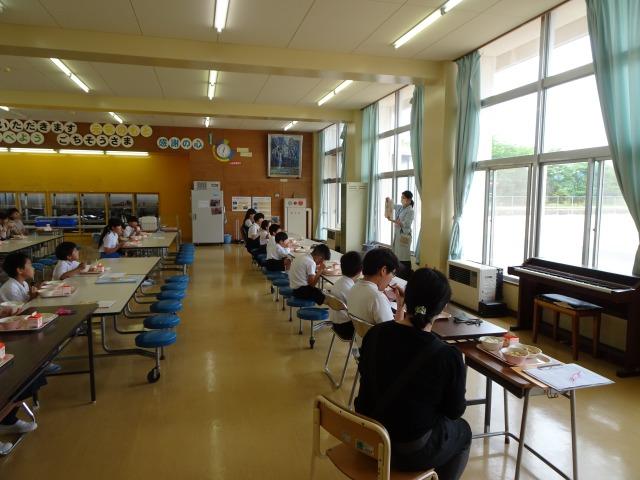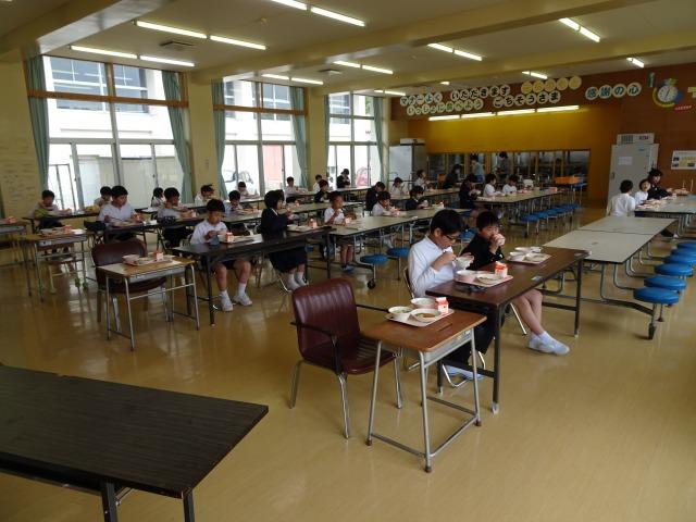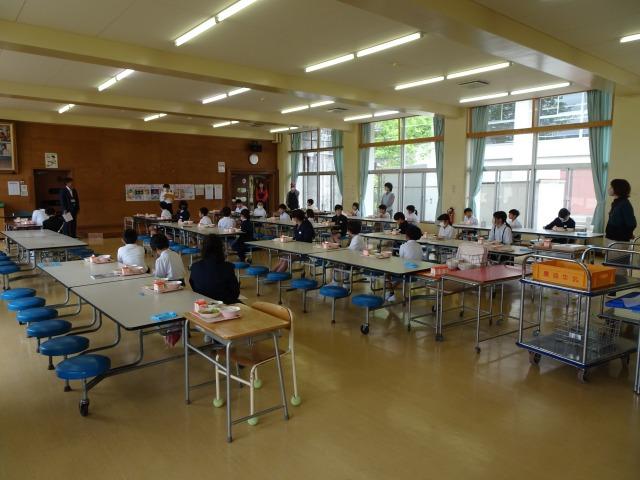 本日より,コロナ禍前に行われていた全校児童でのランチルーム給食を復活させました。多くの児童や職員にとっては,初めての体験になります。「近距離」「対面」「大声」での発声や会話は控える等の指示は継続されているため,全員同一方向を向き,ある程度の距離を確保しての食事となりますが,やはり全員が集まるのはいいなと感じました。