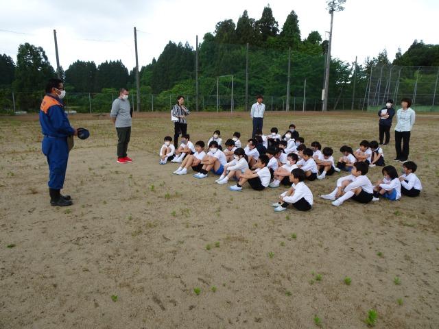 津幡警察署の方をお招きし,不審者対応訓練を行いました。不審者にできるだけ刺激を与えず,自分(職員)の身を守りながら,子どもがいる場所に近づけないように,落ち着いて対応しなければなりません。児童は,職員の指示により,迅速に静かに避難する必要があります。津幡署の方からは,児童・職員の対応に高い評価をいただきました。