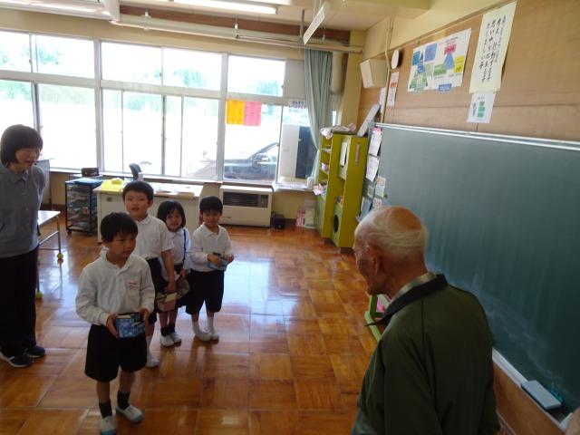 今年も津幡町在住の川幡様より,手づくりの筆箱をプレゼントしていただきました。「ざいりょうは何ですか」「作るのにどれくらいかかるのですか」などいろいろな質問も飛び出し,1年生の元気さに川幡様も喜んでおられました。もちろん「ありがとうございました」と立派にお礼も言えました。