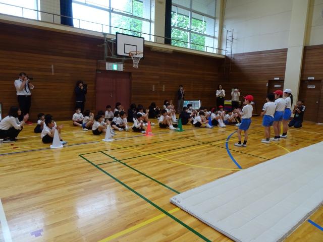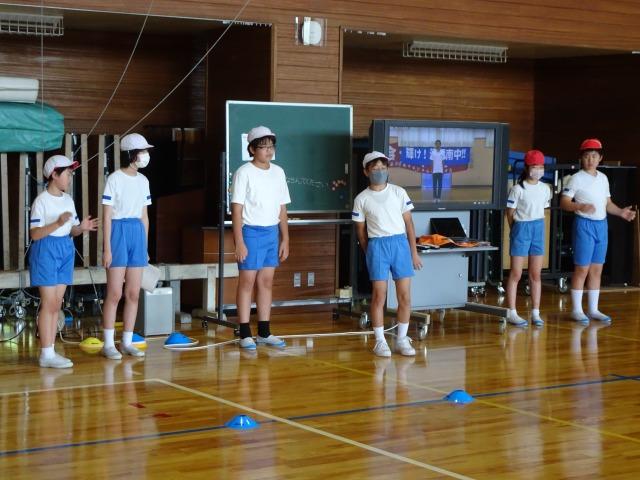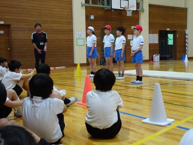 これまで練習してきたなわとびの技を全校の前で披露しました。練習を続けてきたことにより,できるようになったり続けて跳べるようになったりしました。「継続こそ力なり」ですね。