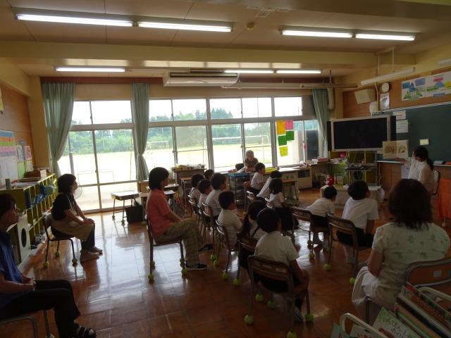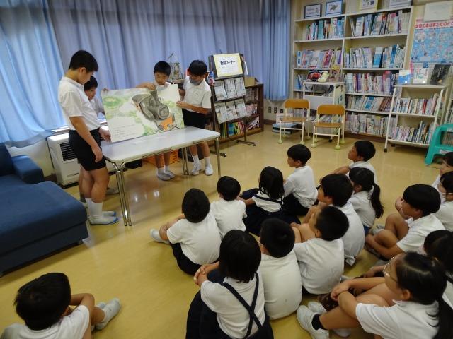今日は,図書関係のイベントが2つありました。図書委員会による読み聞かせと,金のがちょうさんによるお話会です。読書に親しむ夏休みになるといいです。