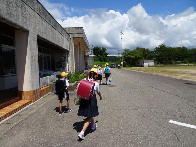 昨日は暑く,今日は雨の中でしたが,昨年度までのような日帰りではなく,「宿泊」で体験学習を実施することができました。3校の5,6年生が集い,夕食や朝食,夜の活動もともに過ごすことで,より深い交流活動にもなりました。決して天候に恵まれたとは言えませんが,子どもたちの笑顔には満足感が溢れていました。