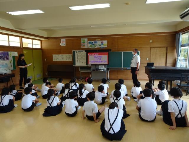 津幡町役場と津幡警察署の方をお招きして,交通安全教室が行われました。1・2年生は安全な歩行について,3年生以上は安全な自転車の運転について学びました。命を守るための大切な学びとなりました。