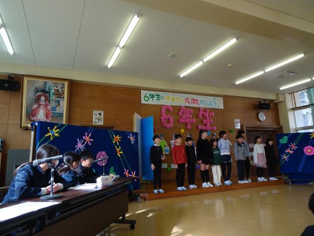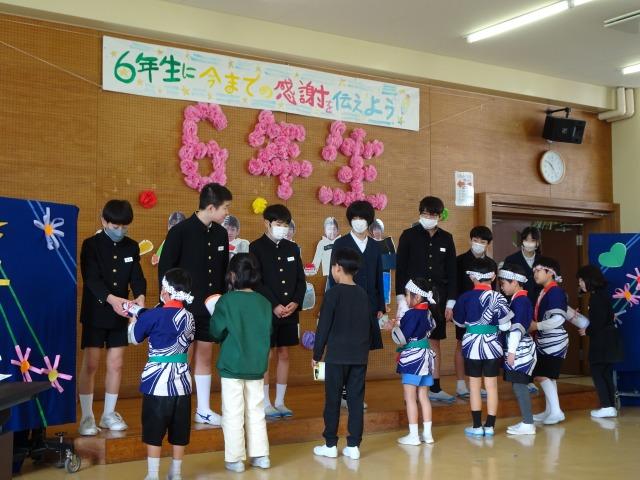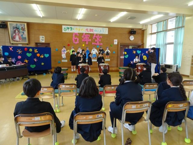 3月に卒業する7名のために「6年生を送る会」が行われました。やさしく頼りがいがある6年生のために,感謝の気持ちがいっぱいつまったあたたかい会になりました。ずっと前から準備してきた5年生のがんばり,3・4年生のユーモアあふれる劇,驚くほど上手になった1・2年生のでんでこ太鼓,さすがと思わせる6年生の渾身の劇,やっぱり泣けました。多くのご家族の皆様,地域の方々,ご来校・ご参観ありがとうございました。