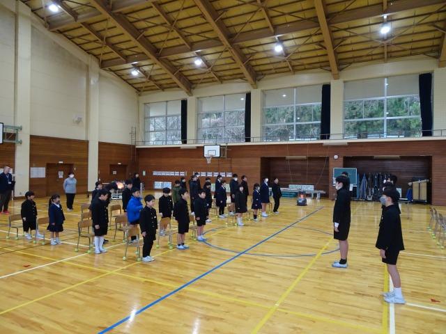 来週の卒業式に向けて,体育館にステージを設置し,今週から卒業式練習が始まっています。7名の6年生が動きを確認していました。明日から全校練習も始まります。