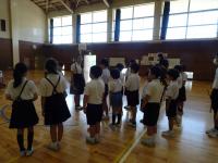 12月の全校集会がありました。校歌を歌い、各種表彰や校長からの話、12月の生活目標「せいりせいとんをしよう」について話がありました。整理整頓が達成せきるよに5・6年生より取組の提案がありました。
