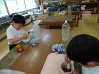 なかよし班で、ハウスづくり2回目。骨組みもできあがり、もう少しで完成です。今日も協力して、考えて活動できました。