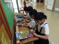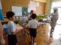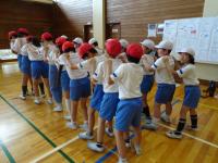 お昼休みに、エンカウンターを楽しみました。自分のことやお友達のことをよく知り、もっと仲良くなるためです。「バーディーチェーン」(全員が話さずジェスチャーでコミュニケーションをとり誕生日順に並ぶ)や「集合ゲーム」(手をたたいた数で集まる)、「どれがすきゲーム」(ラーメン、ハンバーグ、カレーどれが好きが話さずジェスチャーでコミュニケーションをとり集まった後、理由を考え発表する)を楽しみました。友達のことを知ることができ、ニコニコ笑顔がたくさん見られました。