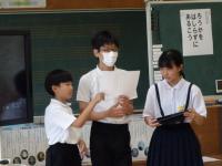 朝の放送で6年生が今日の活動についてお知らせをしています