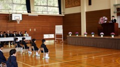 10時から,本校体育館にて,平成29年度の入学式を行いました。新1年生4名(男子3名,女子1名)は,元気よく入場。式の最中は,ずっと姿勢正しくお話しを聞いてくれました。さすが笠野っ子ですね。交通安全協会の坂本さんから安全帽をいただいたときは,うれしさで笑顔いっぱいになりました。最後に,6年生のお兄さんお姉さんから歓迎の言葉をもらい,引き締まった表情も見せてくれました。これからいっしょにがんばりましょう。