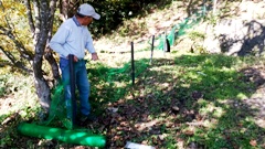 6日(月)の朝,学校に来て見ると,中庭が見事にやられていました。(写真に写ってるのは,ほんの一部です。)イノシシです。昨年もこの時期にひどくやられました。一度こうなると何度もやられることは,昨年の経験で分かっています。そこで,今回は,防獣ネットを張りました。昨年は,張るとしたらかなりの長さになることから,張ることを躊躇していましたが,今年は,甘いことを言ってられないと分かっているので,さっさと張った次第です。その日のうちに杭やネットを買いに行き,翌7日(火),1.2mの杭20本に,ネットを45mほど張りました。(笠野の森の階段から園芸倉庫まで。)これで少しは安心です。しばらくは,どうなっているか(ネットの外に,諦めて帰って行った跡があるか)期待しながら学校へ来ることになりそうです。