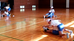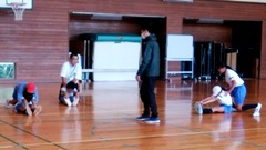 今年度の体力・運動能力調査において,本校の児童は,全国・県と比較して体が堅いことが分かりました。そこで,今後の体育の授業の始めに,柔軟体操を取り入れることになりました。この日は授業参観。5・6年生は,体育の授業のはじめに,ペアを作って,上手に柔軟体操をしていました。観ている保護者の方々も,「いい取り組みだ」という顔(私の見立てですが)をしておいでました。ちなみに,遡ることおよそ一月前,10月5日に,職員で柔軟体操研修会(右写真)を行っています。