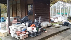中庭にある温室。入ったことのある児童はいるのでしょうか?本来の目的を離れ,物置として長年存在していた温室。何とかしようにも,手がつけられない状態でした。しかし,この度,校務員さんの手を借りて復活を目指すことにしました。数日かけて中からいろいろな物を出し,この日は,レンタルした軽トラックに載せ,3回に分けて処分場へ運びました。どうです?かなりすっきりしたでしょう?とはいえ,まだまだです。今後,さらに整理整頓,補修をし,来年の春から授業で使えるようにする予定です。続報をお待ちください。