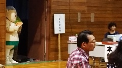 次が,岩崎豊年太鼓保存会(本校児童4名も参加)による「岩崎豊年太鼓」(写真には写っていませんが,この右側に何人もの大人の方々もおいでました。)でした。その後もいろいろあり,楽しい夜は更けていきました。それにしても,とっても暑い夜でした。ハンカチがぐっしょりでした。応援に来ていた「ほくの里」(JA石川かほく公式キャラクター)も,団扇で扇いでいました。(しかし,ぬいぐるみの中の人は大変だったでしょうね。)21時すぎに,まつりは終わりました。お世話くださった皆様,本当にありがとうございました。