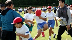 100m走,みんなで8の字とび(大縄跳び),ロケットボール投げ,学校対抗リレー,集団演技「津幡町歌」など,どの種目でも練習の成果を発揮しました。ちなみに,8の字とびと学校対抗リレーは,3校合同で行いました。このような環境で違う学校の児童と一緒にチームを作り何かを行うことは,あと半年で規模の大きい中学校に一緒に進む3校の児童たちにとって,すばらしい体験になったことでしょう。