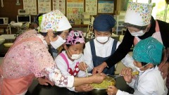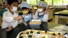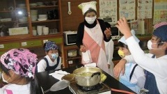前半(1・2限)は,津幡町の食生活改善推進委員の滝川さんと赤坂さんが,1・2年生のお菓子作り教室を行ってくださいました。手をしっかり洗ってから,あいさつをしてお菓子づくり!わくわくパーティーに招待した方々に配るためのサツマイモのお菓子を心をこめて作りました。自分達で収穫したサツマイモで作った,三色団子。つぶして,こねて,丸めて,ゆでて,白ゴマ・くろごま・きなこでいろどりました。おいしそうです!大地の恵みと,協力して下さった地域の方々に感謝しておいしくいただきましょうね。地域の先生ありがとうございました。今後もよろしくお願いいたします。(甲部)