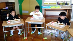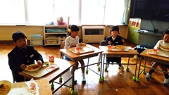 1年生にとって,初めての給食。これまでは,2年生が食べてはいましたが,1年生は,午前中に帰宅(職員による下校指導で)していたので,食べたことがありませんでした。そんなこともあってか,この日の1年生の表情はやっとで満開になった校庭の桜のようでした。なんと全員,お代わりまでしたのです。(人気No.1のカレーライスでした。)明日からも楽しみですね。
