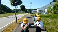 3年生が,社会科で大きな地図を作るために,学校のまわりの調査に行きました。カントリーエレベーターや笠野公園,お世話になっている七黒さんのお家,マラソンコースなどを白地図に書き込みながら歩きました。地図の完成が楽しみです。