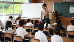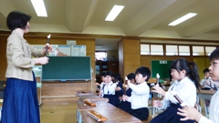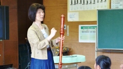 初めてリコーダーを勉強する3年生(と2年目となる4年生)が,昨年も来てくださった中村俊子先生(フルート奏者として,石川県内を中心に活躍されています)に,リコーダーの上手な吹き方を教えてもらいました。初めて吹いてみる3年生はドキドキでしたが,タンギングの仕方や持ち方を教えてもらって,上手に吹くことができるようになりました。また,いろいろな種類のリコーダーを見せて(演奏して)もらい,大盛り上がりでした。中村先生,来年もまた,よろしくお願いいたします。
