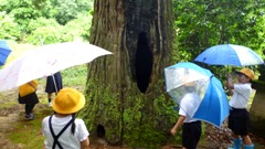 総合的な学習の時間に,環境学習の一環として,笠野の森について調べました。春の森に入った子どもたちは,積極的に,樹木や,生息する虫などを観察していました。(大きな石をゴロッと転がしたら,ダンゴムシが見つかりました!)これからも,季節に応じて変わりゆく森の様子をスケッチしていきたいですね。(登美)