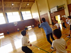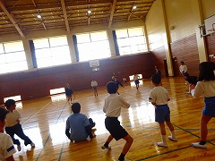 ↑ 1,2年合同で体育をしました。これは、くも「スパイダーマン」歩きです。