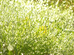 ↑みずみずしい朝つゆが朝日を浴びてキラキラ輝きます。