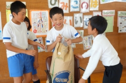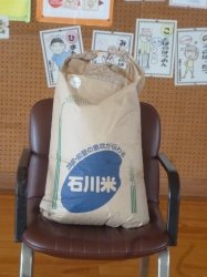 先週、1袋30kg!(低学年の児童1人分)のはざ干しの新米をJAの前田さんが届けて下さいました。