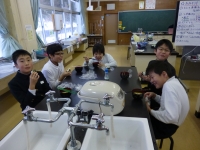 5・6年生は算数で,複式授業でした。5年生は,「小数×小数」の学習のまとめで,これまでの学習をもとに立式し,答えを求めました。6年生は,「分数×分数」で,辺の長さが分数でも求積公式は使えるのか話し合いました。