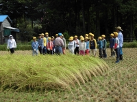 児童は田植えから稲刈りまでの体験でしたが、その間のお世話や管理など、営農組合の方々にはたくさんのご協力をしていただきました。この場をお借りして感謝申し上げます。