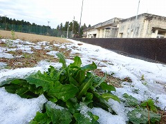 ↓一面の霜柱の中で、つくしが顔出しています。やはり、春ですね。