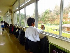 ↓ 2年生がにっこりタイムを企画し、招待してくれました。国語の学習の発展で自分たちで考えた「かわり鬼ごっこ」をいくつも紹介してくれました。乗り物鬼ごっこは、駐車場で休むことができますが、輪っかの中に入れるのは2人までです。ほかの人が入りに来たら、自動的に駐車場から出なければいけません。楽器鬼ごっこや南極鬼ごっこ等、十分な運動量が確保されるものばかりでした。子供たちの発想力の柔軟さには感心しました。