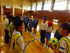 ↓ 1年生は全員で元気にサッカーで、体力づくりに励んでいます。