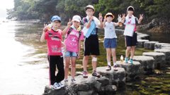 最初の活動となる午後の活動は,海洋活動。心配された天候も,かえって凪(波がない状態)で,快適でした。おかげで,普段はなかなか行けない釣り桟橋まで行き,上陸。磯の観察を楽しみました。後半も好調。2チームとも息が合っていて上手だと,お世話くださった自然の家の小原先生と寺下先生に褒められました。