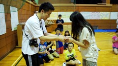 15時25分,ようやく出番です。笠野小は人数が少ないので,萩野台小と刈安小といっしょに位置につきました。1番目が笠野小です。制限時間は2分間。彼らは,これまでの練習の成果を発揮し,堂々と演技しました。3種目(跳び箱,マット,鉄棒)中,一人1~2種目(児童の希望による)です。中には,会場の雰囲気に乗せられ(?),練習でやらなかった演技を追加して披露した猛者もいました。(担任はびっくりしたそうです。たくましい児童たちです。)結果,笠野小は,みんなすばらしい出来でした。かっこよかったです。