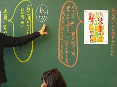 ↑ 5,6年道徳 「くずれ落ちた段ボール」の教材文を読んで、親切な行為をする心について話し合いました。せっかくおばあさんのために親切な心で、くずれ落ちた段バールをもとに戻していたのに、店員さんに誤解されて、反対に注意されてしまうのです。せっかく親切をしたのに・・・もやもやした気持ちに共感しつつも、親切な行為をする心について話し合い、深めました。