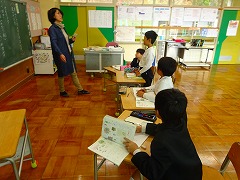 ↓ 授業の後は、授業整理会で1年生が育っていることをたくさんほめていただきました。学習ガイドは1年生は全員体験し、主体的な学びにつながっている、堂々とした発表の仕方、話し方、質問、反応の仕方等、4月からの積み上げが確実な成長となって表れています。小規模校ならではのよさを強みとして授業の中に十分生かし、確実な積み上げを続けていきたいと思います。