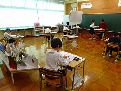 ↑ 1年生が「お手伝い大作戦」をしたことの報告会をしていました。友達の感想を聞いて、「私も同じで、大変だったけれど、ありがとうを言ってもらえてうれしかったです」などと、友達の報告を聞いて、感想を伝え合うこともできました。
