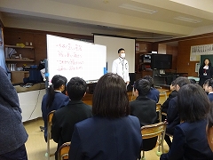 生徒指導主事からは、冬休みの生活についてお話しました.冬休みの決まりを守って,安全で充実した日々をお過ごしください.
