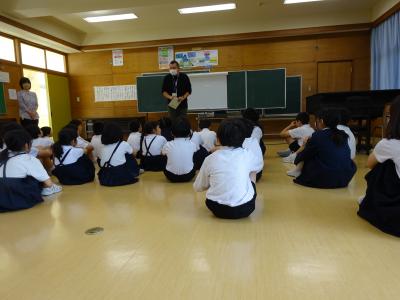 6月のスタートとして全校朝会が行われました。まずは,大きな声で校歌を歌いました。そして,校長から5月の学校生活ですてきだったところや生徒指導の先生から6月の生活目標「ろうかを正しくあるこう」について話を聞きました。5月はたくさんのすてきなところがありました。6月もみんないっしょにがんばりましょう。