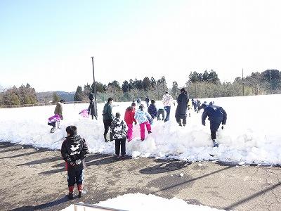 長休みの時間に長縄跳びの8の字跳びにチャレンジしました。低・中・高のそれぞれのチームごとに3分間で何回跳べるかにチャレンジしました。皆、とても上手に跳んでいました。昼休みには「自然ふれあいタイム」として運動場で雪遊びをしました。そりですべる子、雪合戦をする子、大の字に寝そべる子、皆とても楽しそうでした。天気にも恵まれて、今日も笠野っ子は元気です。